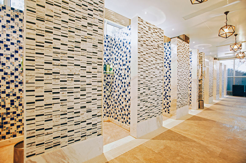 1,溫泉酒店設(shè)計中防水工作,一定要由專業(yè)人士來進行,在鋪好瓷磚之后,要保證瓷磚面有一個泄水的坡度,坡度朝向地漏,地面在鋪設(shè)完成之后要做閉水實驗,時間至少要保證24小時.